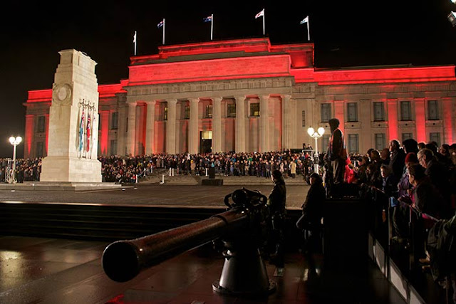 | An ANZAC Day Dawn Service at Auckland Museum. Image via |