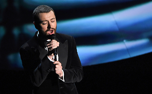 3:03pm – Sam Smith takes the stage to perform his original song for Spectre, “Writing’s on the Wall“.